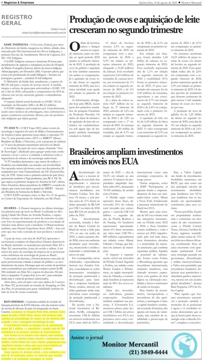 14/08/2025 - Monitor Mercantil