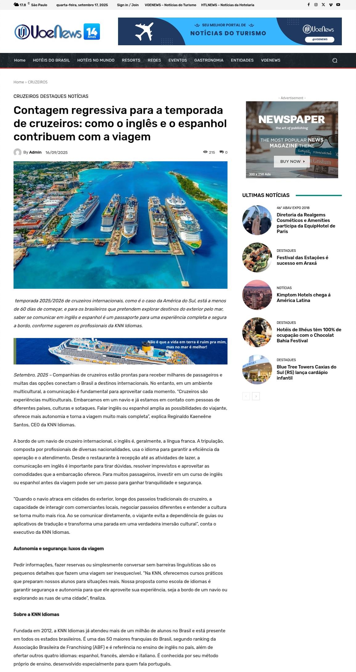 Contagem regressiva para a temporada de cruzeiros: como o inglês e o espanhol contribuem com a viagem VOENEWS - Notícias do Turismo
