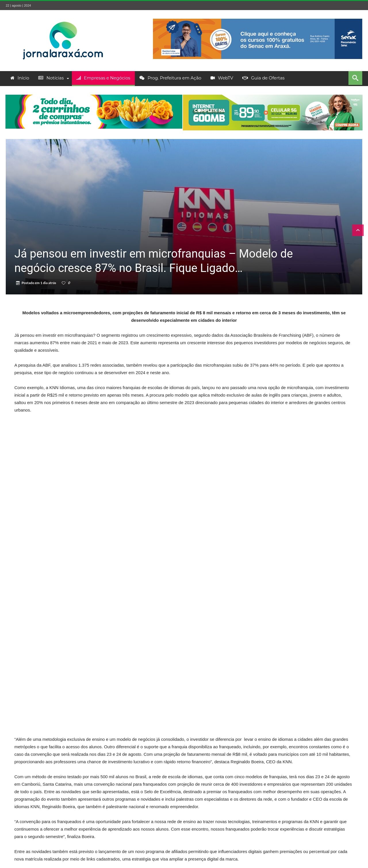 Já pensou em investir em microfranquias - Modelo de negócio cresce 87% no Brasil. Fique Ligado? - Jornal Araxá