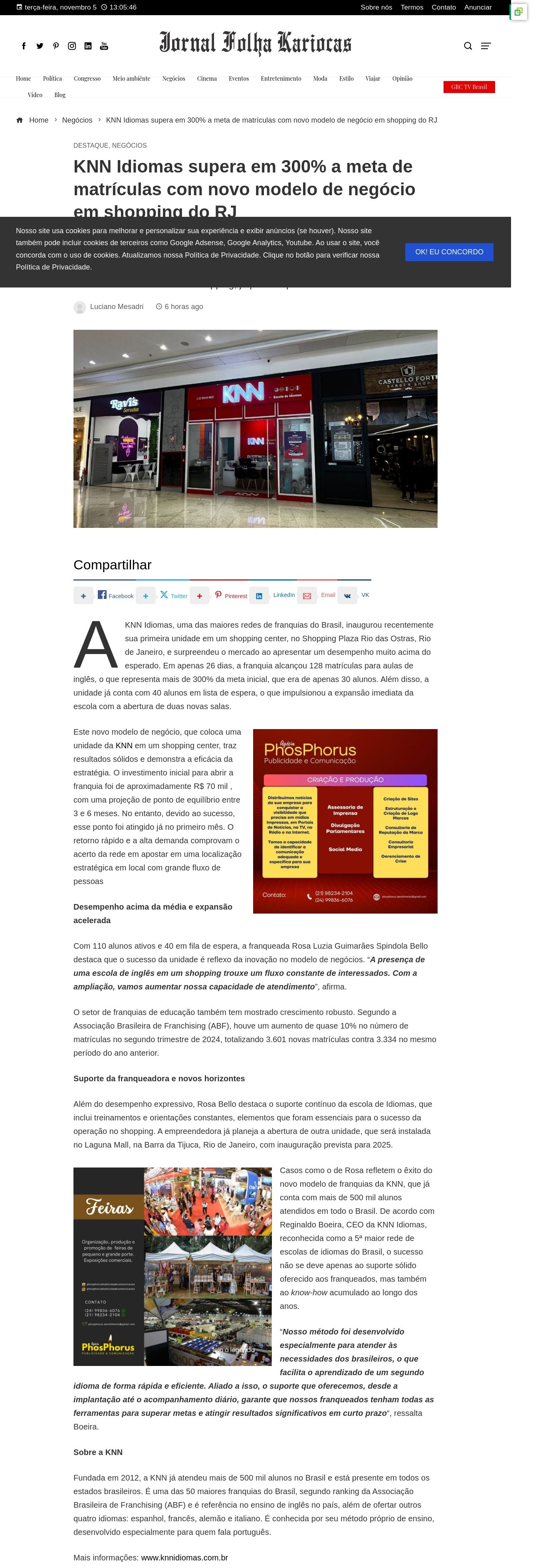 KNN Idiomas supera em 300% a meta de matrículas com novo modelo de negócio em shopping do RJ - Portal Jornal Folha Kariocas