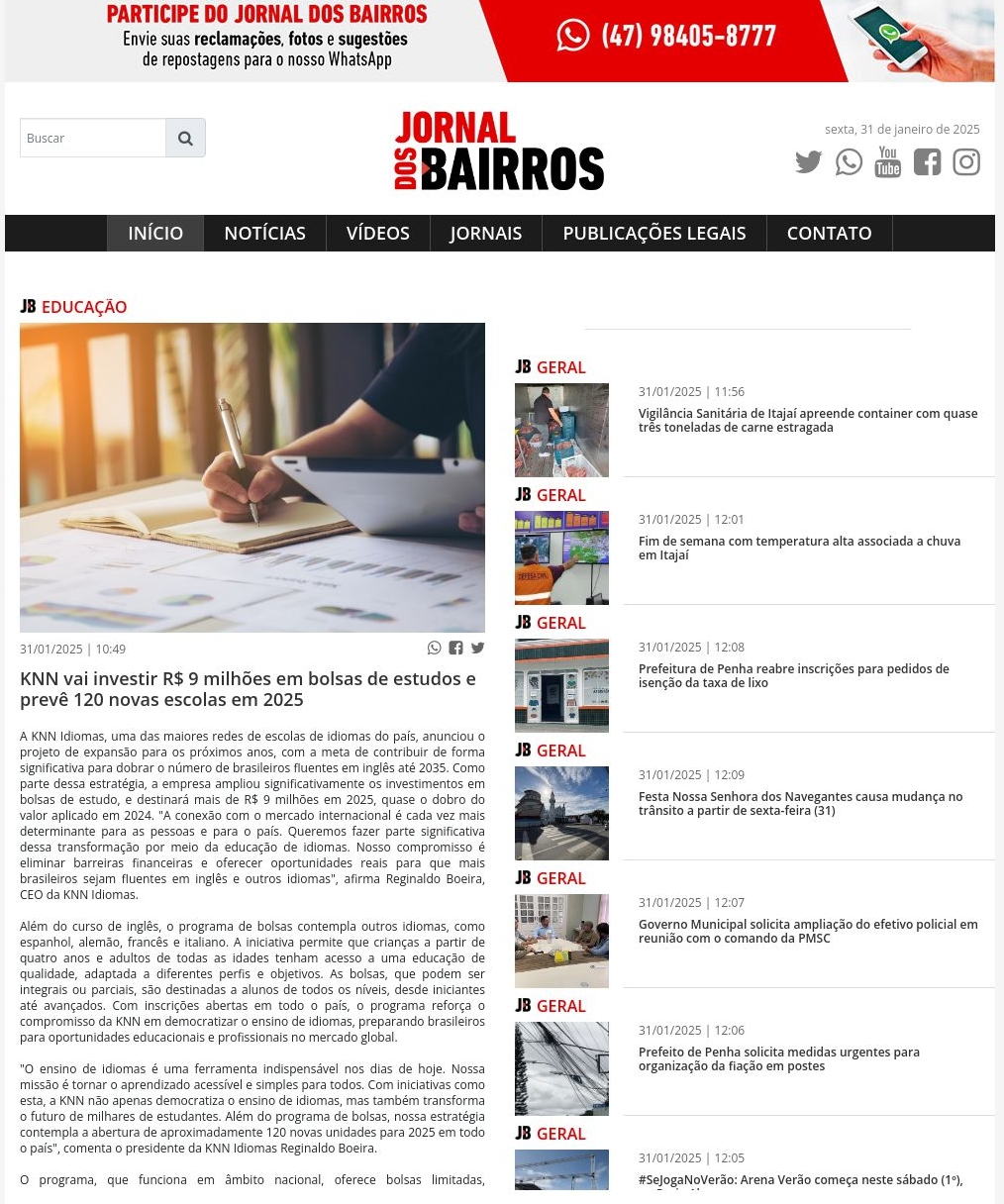 31/01/2025 - Jornal dos Bairros Itajaí