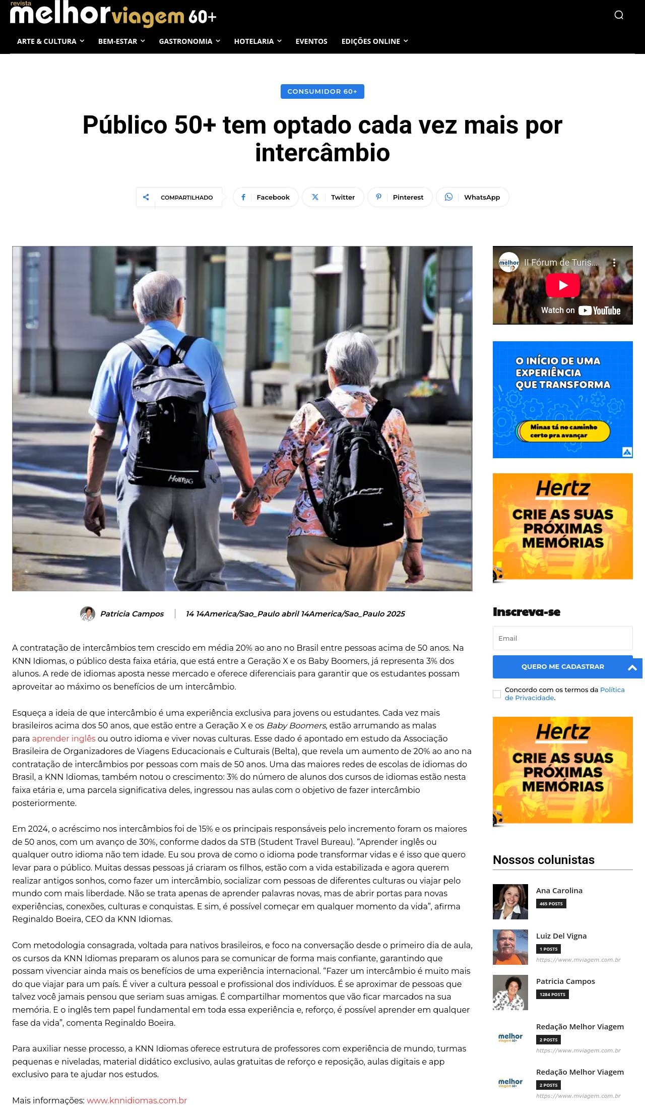 Público 50+ tem optado cada vez mais por intercâmbio